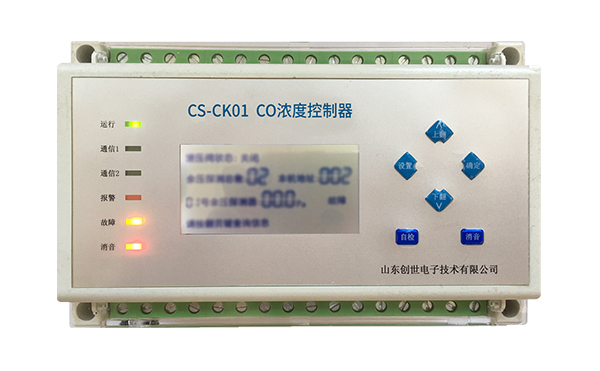 2、CO濃度控制器集中顯示各監測點的一氧化碳濃度值,同時關聯該防煙分區的送風、排煙風機,當一氧化碳濃度值超過預設報警值時能夠自動報警并控制啟動送風、排煙系統;全中文液晶顯示,實時顯示各探測器CO濃度值及工作狀態;將信息實時上傳監控主機。